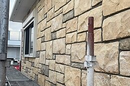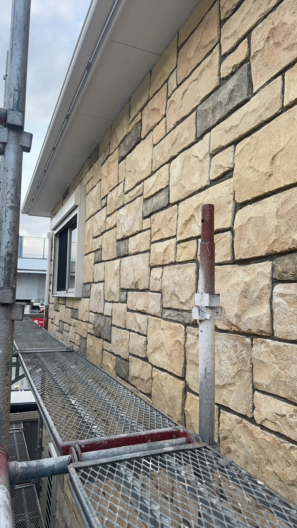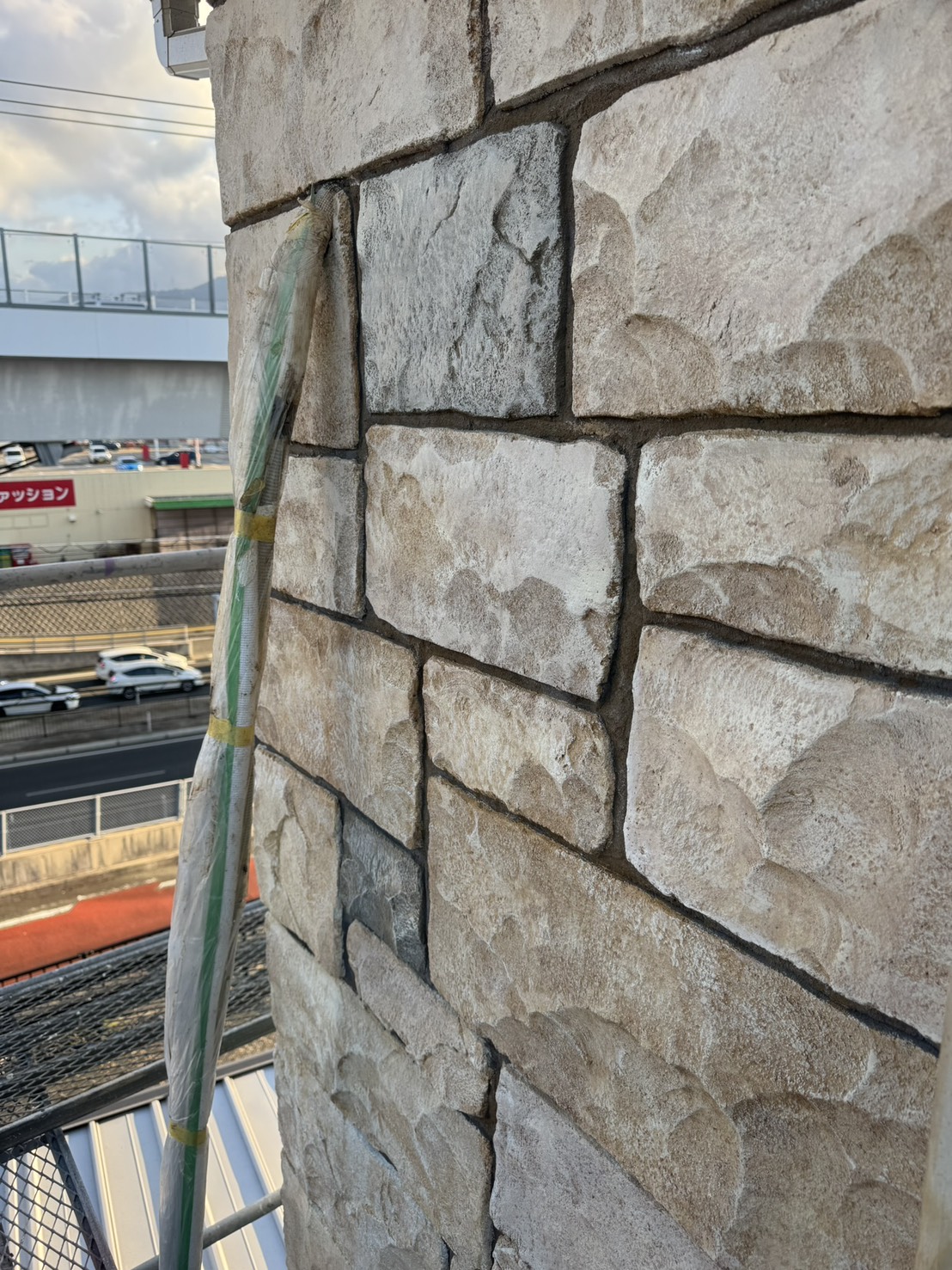 住宅外壁をモルタル造形にて石積風に施工いたしました。(福岡市)